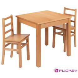 Assembly of one wooden dining table with chairs