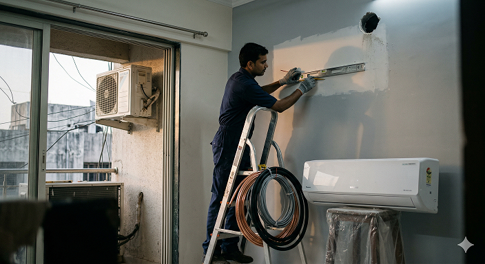 - **Site Inspection:** The first step is to inspect the area where the AC will be installed. This includes checking the room size, wall strength, and electrical connections to ensure they are suitable for the unit.